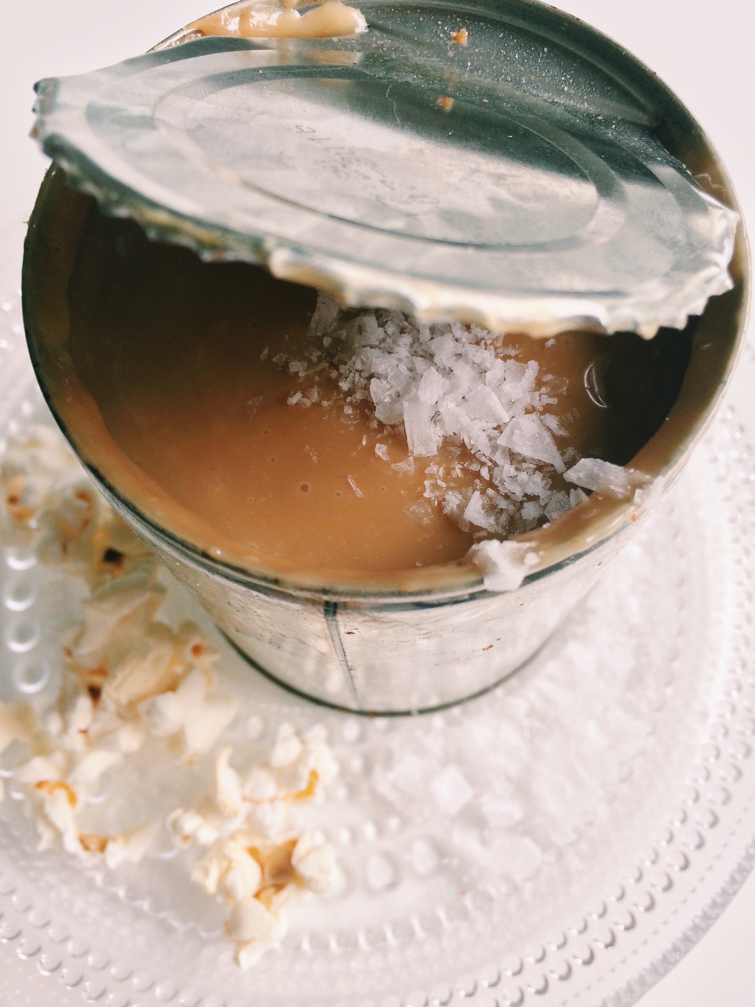 1 tölkki (397 g) kondensoitua maitoa, joka keitetään kinuskiksi TAI tölkki valmiiksi karamellisoitua kondensoitua maitoa