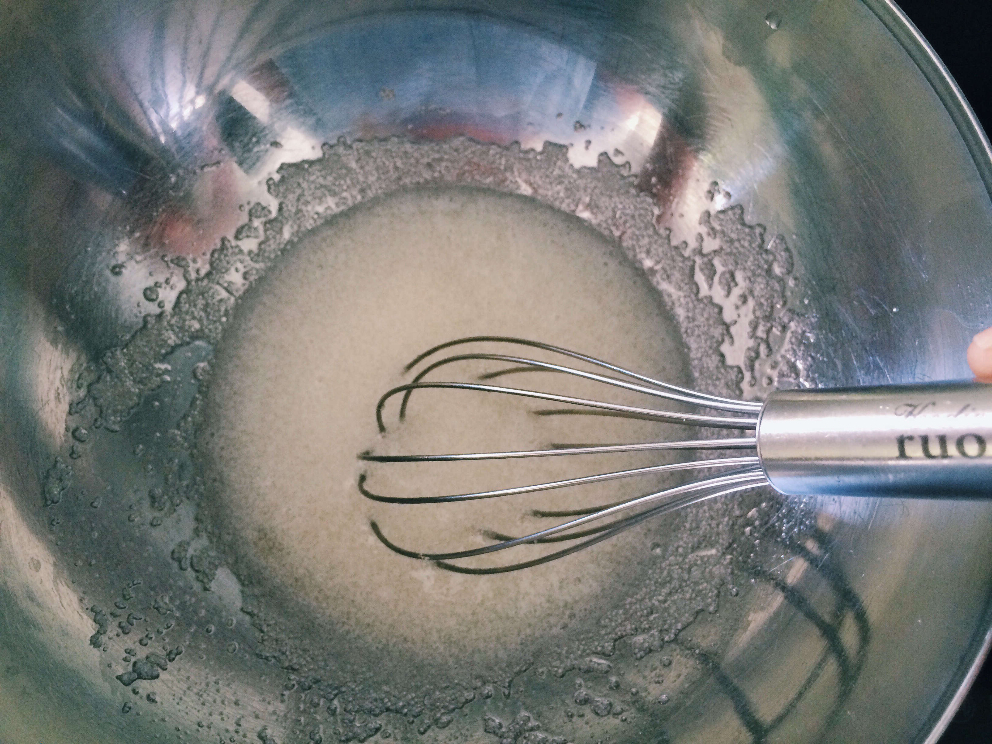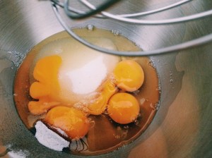 2) Lisää joukkoon kananmunat yksitellen. Vatkaa huolella!