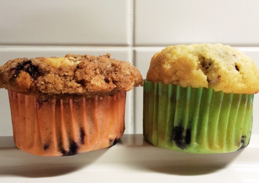 5) Annostele taikina muffinssivuokiin. Parhaiten tämä onnistuu kaatamalla taikinaa kannusta suoraan muffinssipellille aseteltuihin vuokiin. Soppakauhalla voi myös annostella taikinan vuokiin! Jos käytössäsi on muffinssipelti, voi vuoat täyttää melko täyteen. Taikina kohoaa ylöspäin leviämättä ja valmiit muffinssit ovat kauniisti koholla.