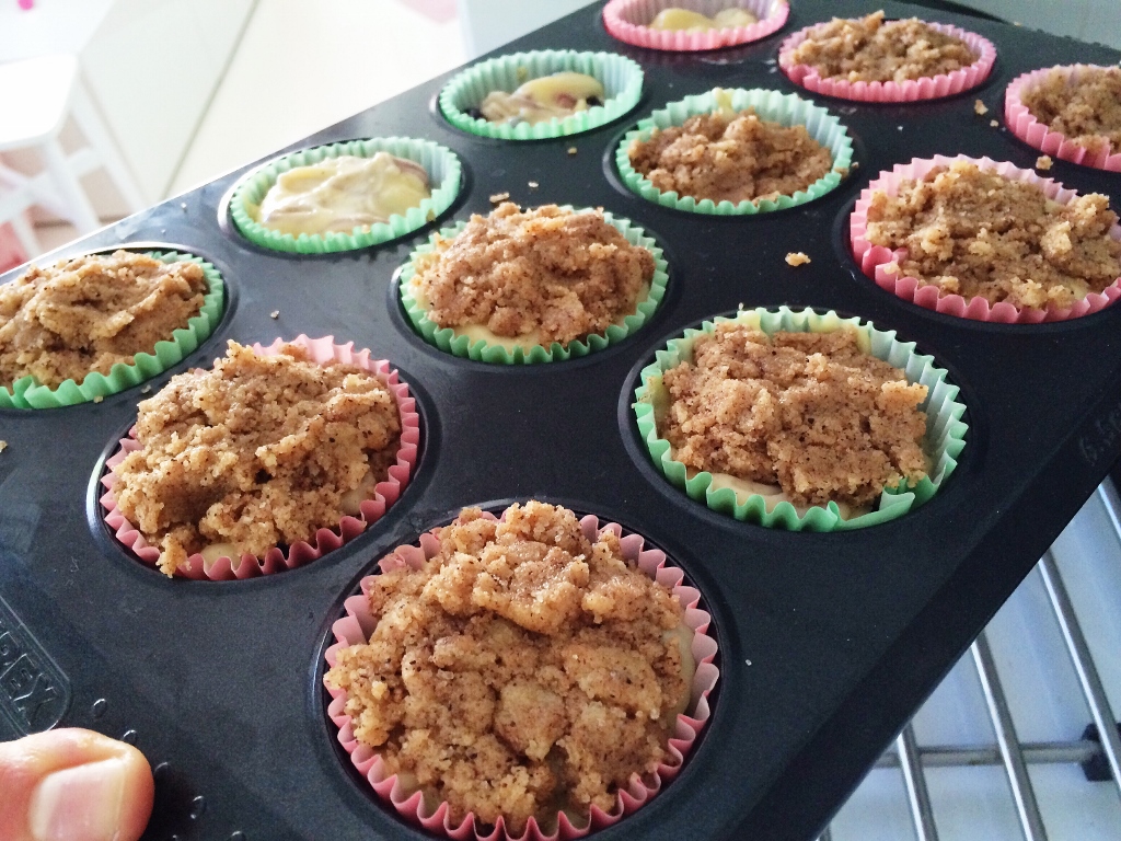 Ohje on todella helppo, tässä sekoitellaan ihan vain haarukan voimin ainekset sekaisin ja kaadetaan taikina kannuun , josta sen saa näppärästi muffinssivuokiin annosteltua. Mielestäni muffinssien paistossa muffinssipelti on ihan ehdoton, jotta muffinssit kohoavat kauniisti ylöspäin eivätkä lässähdä ja leviä ympäriinsä kuten ilman peltiä paistaessa usein käy. Minimuffinssipellin olen itse aikoinaan ostanut Ikeasta ja ilokseni löysin siihen söpöjä pieniä muffinssivuokia Claes Ohlsonilta. Mikäli käytössäsi ei ole muffinssipeltiä niin käytä pahvisia kuppikakkukippoja, jotka säilyttävät hyvin muotonsa!