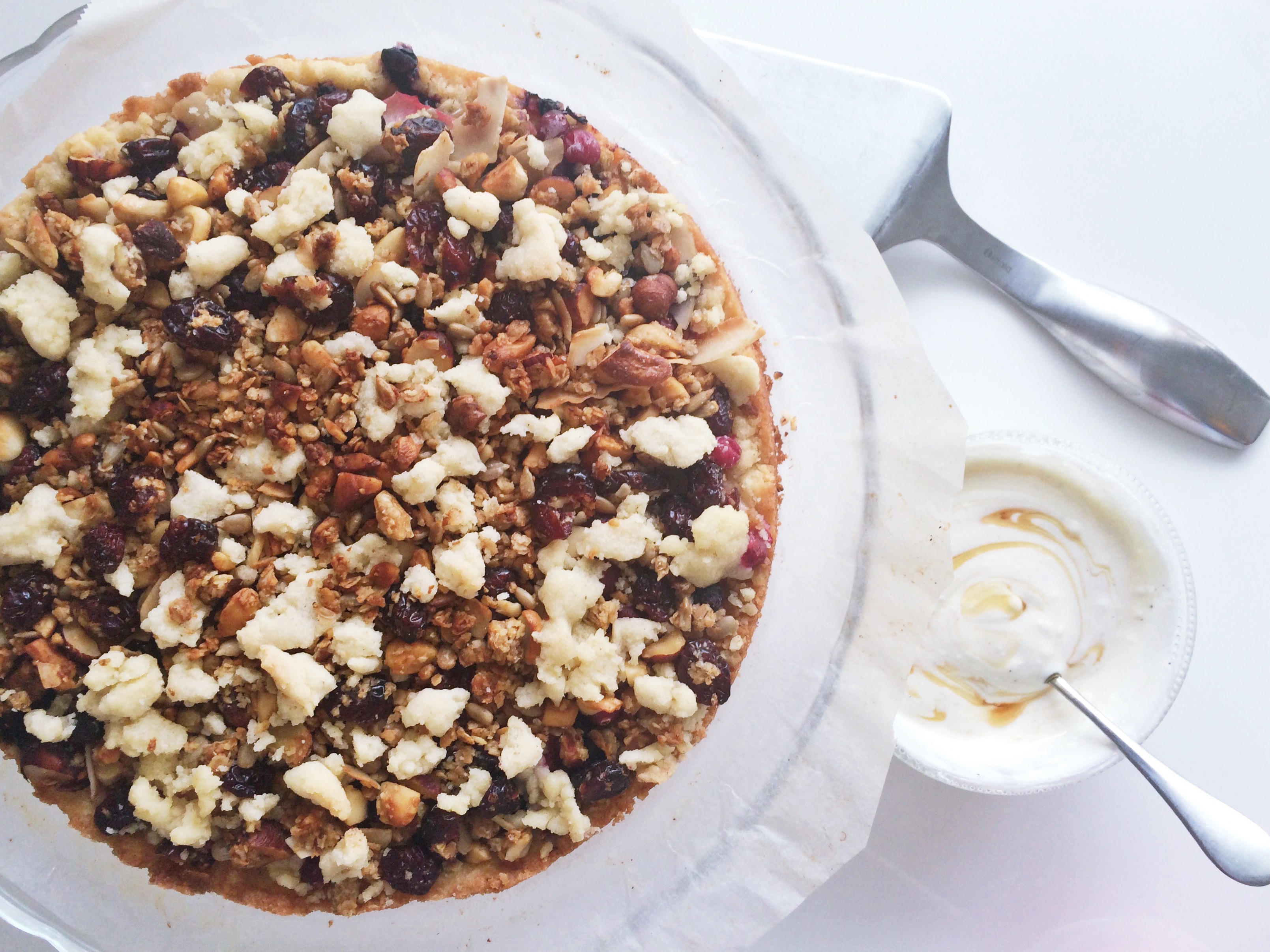 Granolakakku ja jogurttikastike